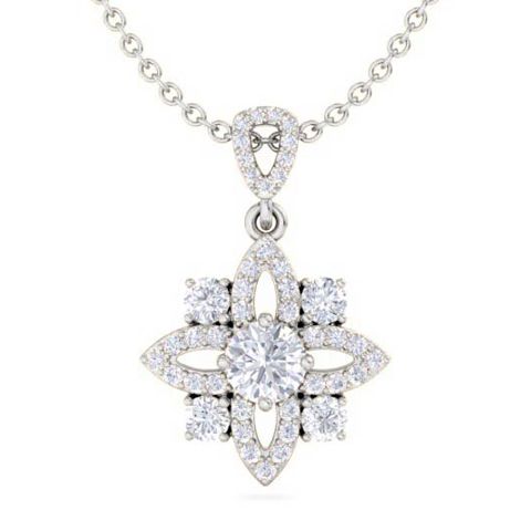 1 1/4 Carat Natural Diamond Flower Statement Necklace In 14 Karat White Gold, 18 Inches