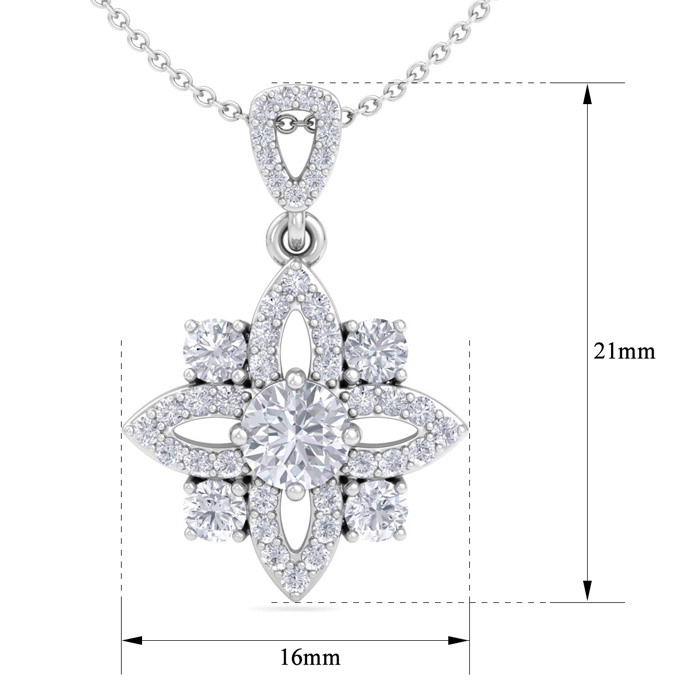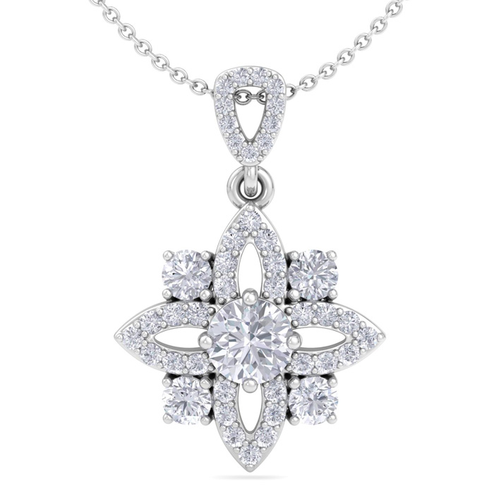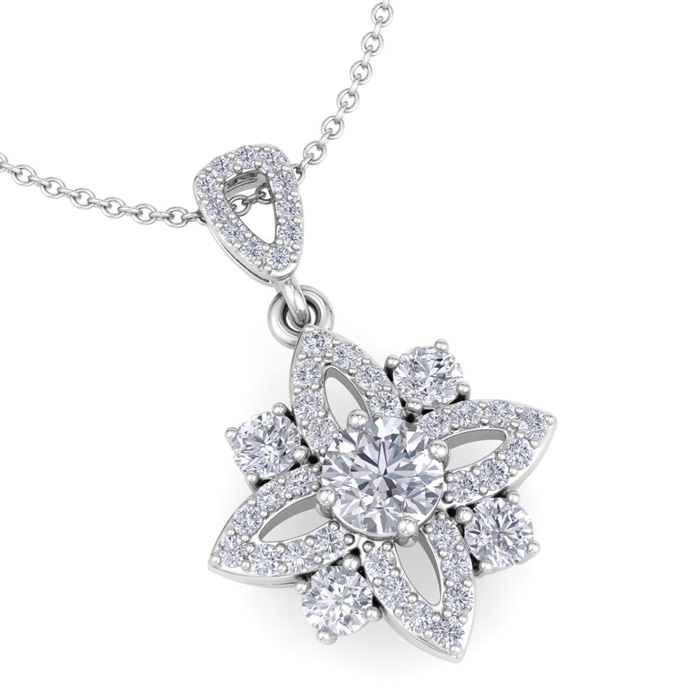 1 1/4 Carat Natural Diamond Flower Statement Necklace In 14 Karat White Gold, 18 Inches