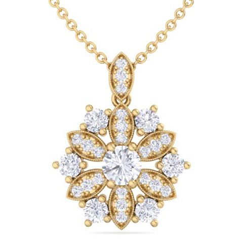 1 1/4 Carat Natural Diamond Snowflake Statement Necklace In 14 Karat Yellow Gold, 18 Inches