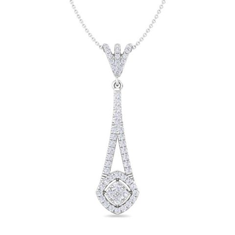 1/2 Carat Natural Diamond Chandelier Necklace In 14 Karat White Gold, 18 Inches