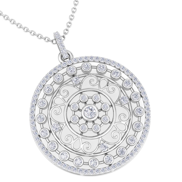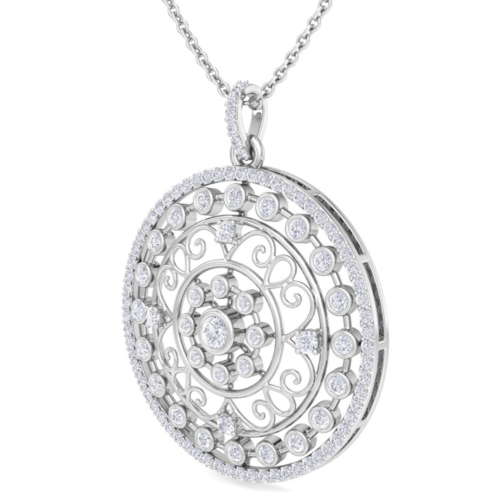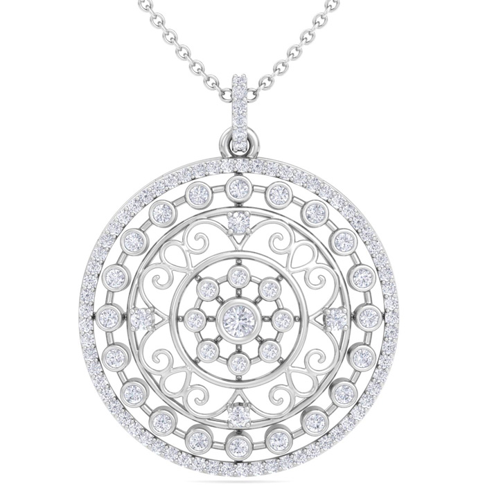 1 Carat Natural Diamond Circle Statement Necklace In 14 Karat White Gold, 18 Inches