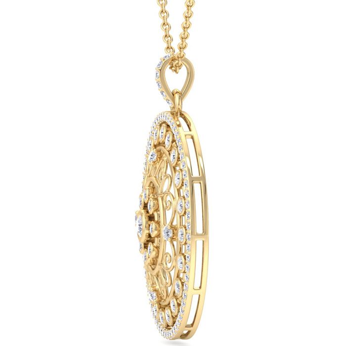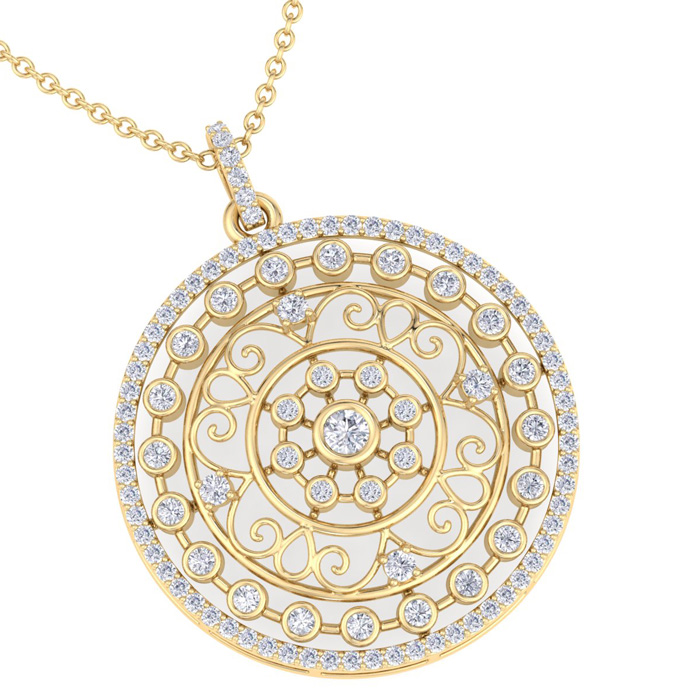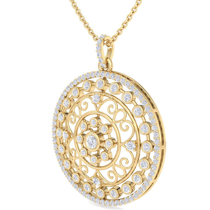 1 Carat Natural Diamond Circle Statement Necklace In 14 Karat Yellow Gold, 18 Inches