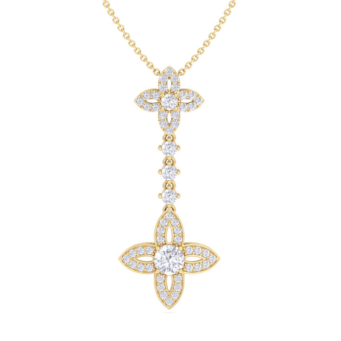 2 Carat Natural Diamond Chandelier Necklace In 14 Karat Yellow Gold, 18 Inches