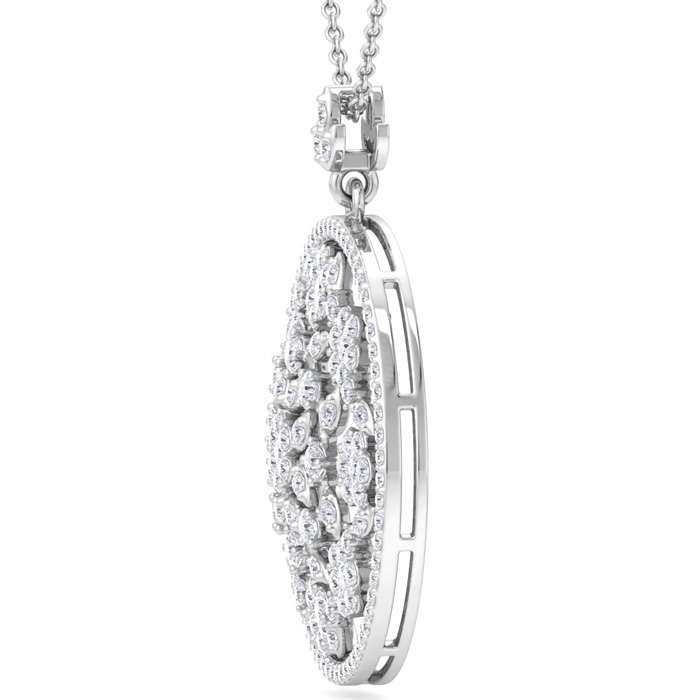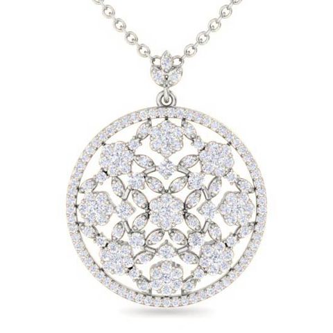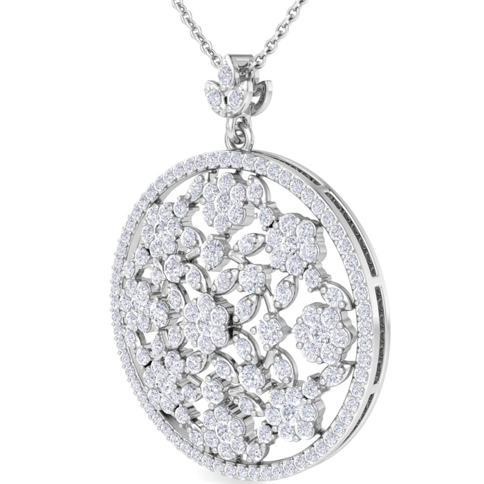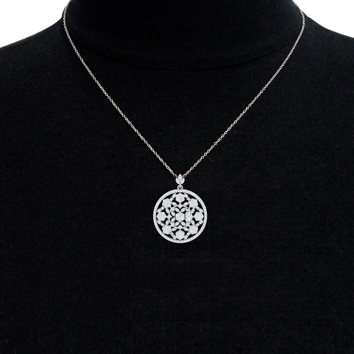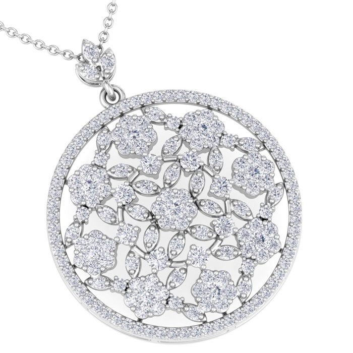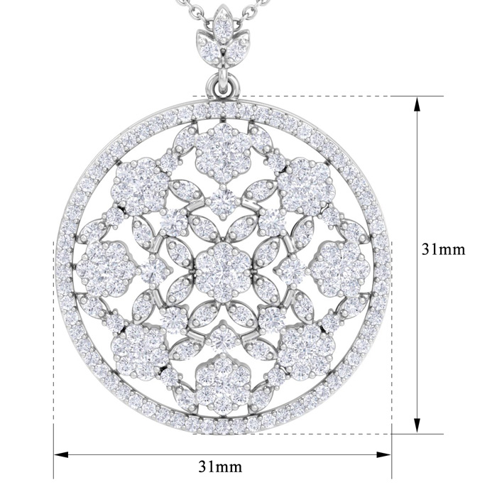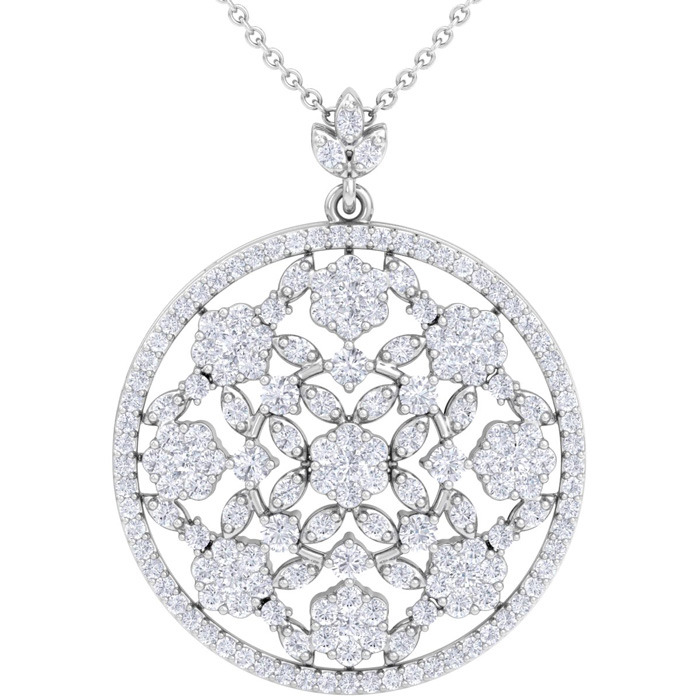 3 Carat Natural Diamond Ornate Circle Necklace In 14 Karat White Gold, 18 Inches