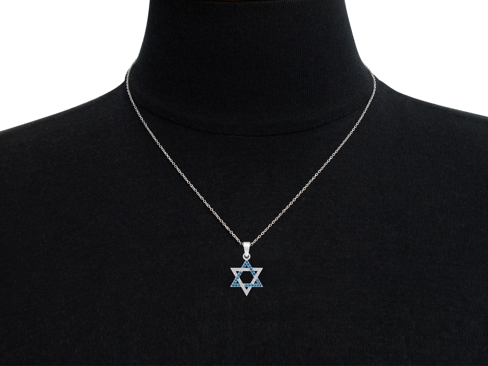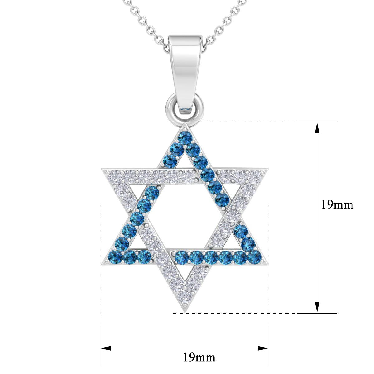0.40 Carat Blue and White Diamond Star of David Necklace In 14K White Gold, 18 Inches