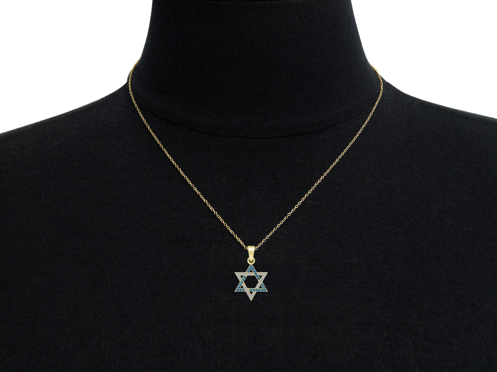 0.40 Carat Blue and White Diamond Star of David Necklace In 14K Yellow Gold, 18 Inches