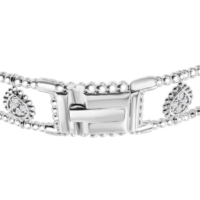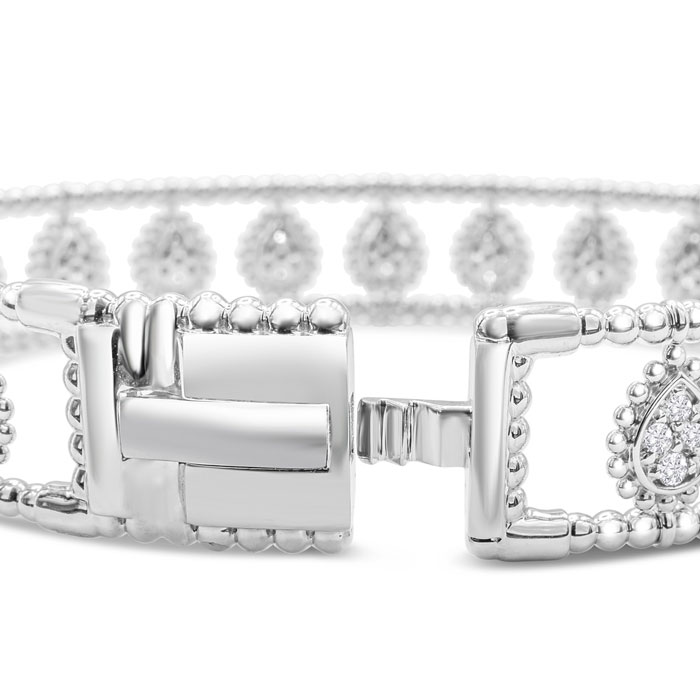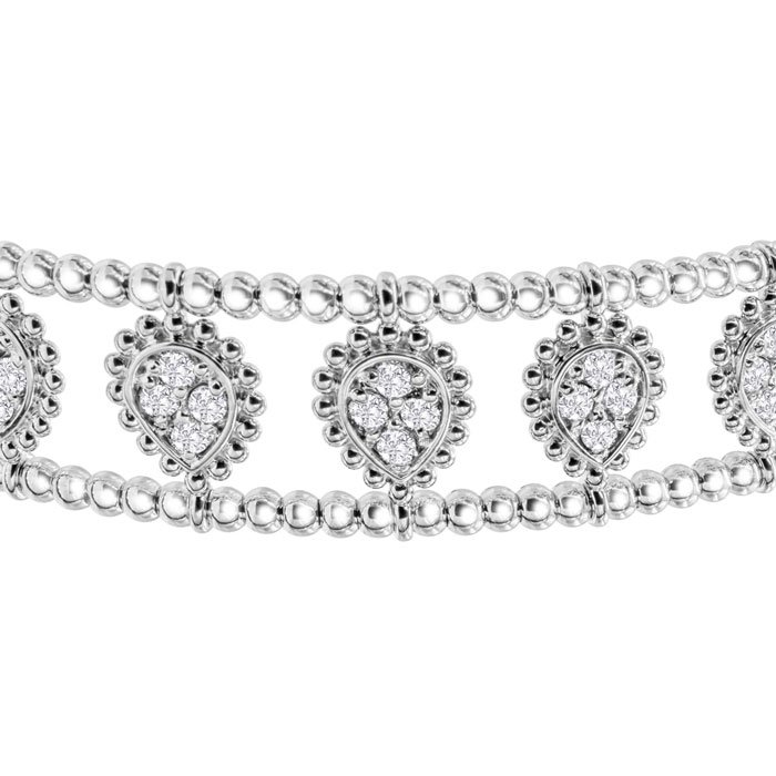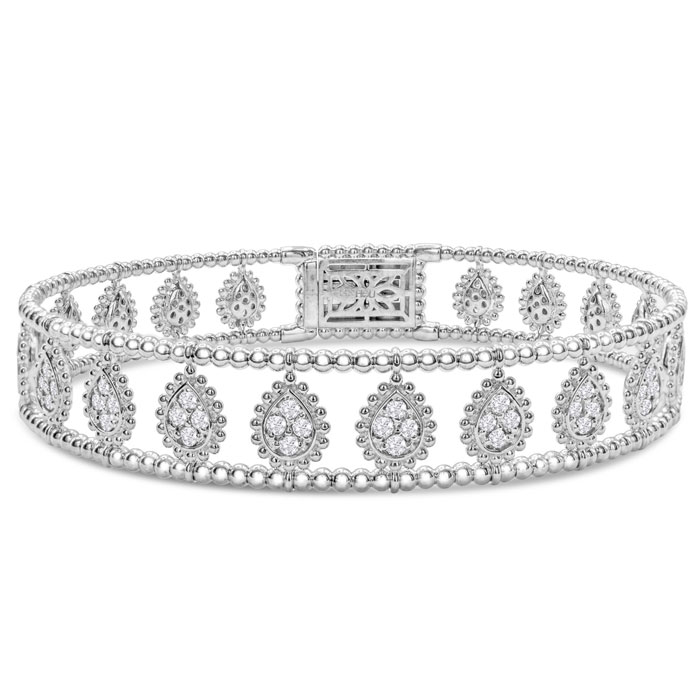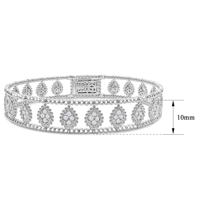 1 1/2 Carat Natural Diamond Teardrop Bangle Bracelet In 14K White Gold, 7 Inches