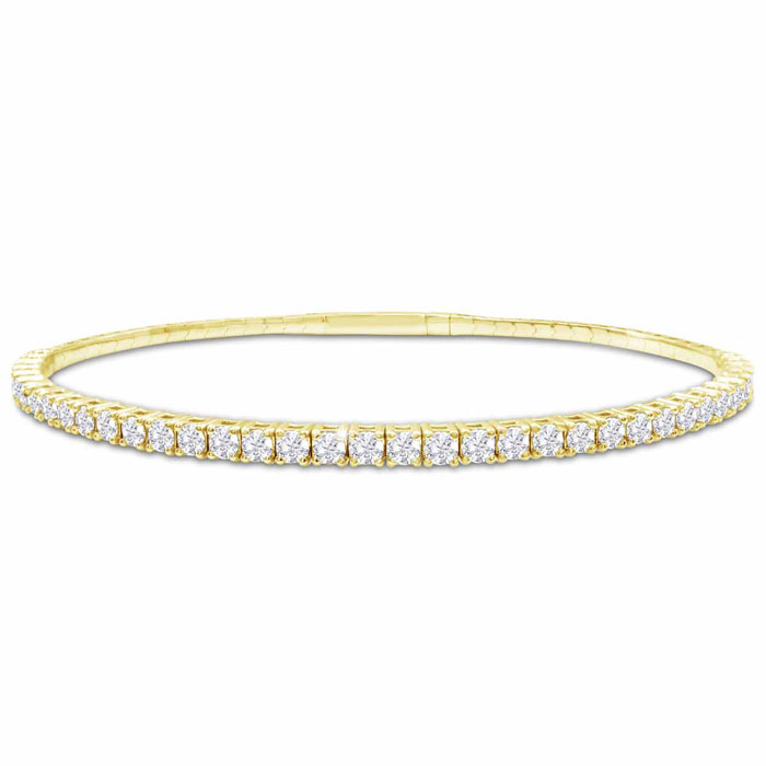 1 1/2 Carat Natural Diamond Flexible Bangle Bracelet In 14K Yellow Gold, 7 Inches
