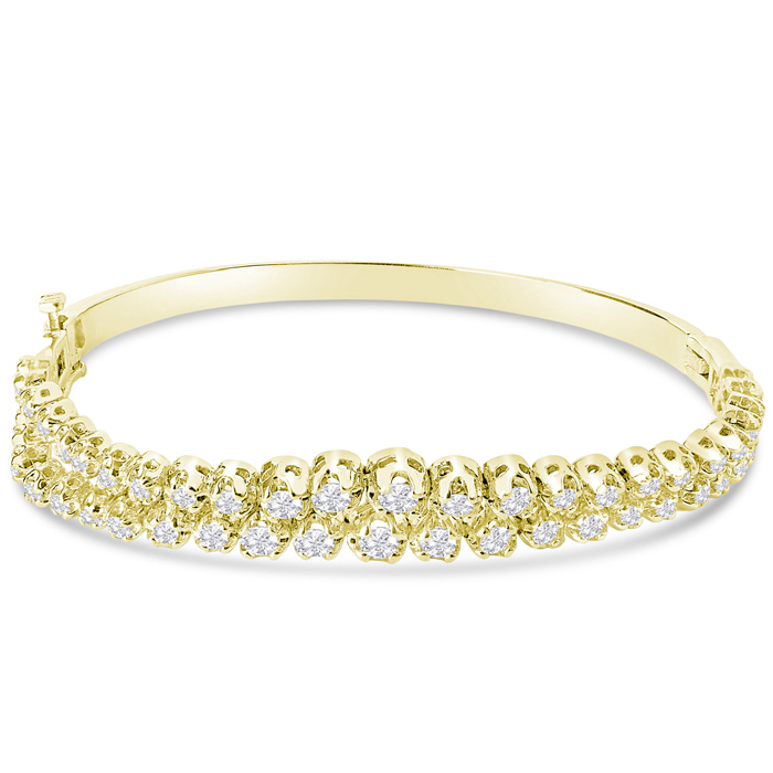 1 1/2 Carat Diamond Double Row Bangle Bracelet In 14 Karat Yellow Gold, 7 Inches