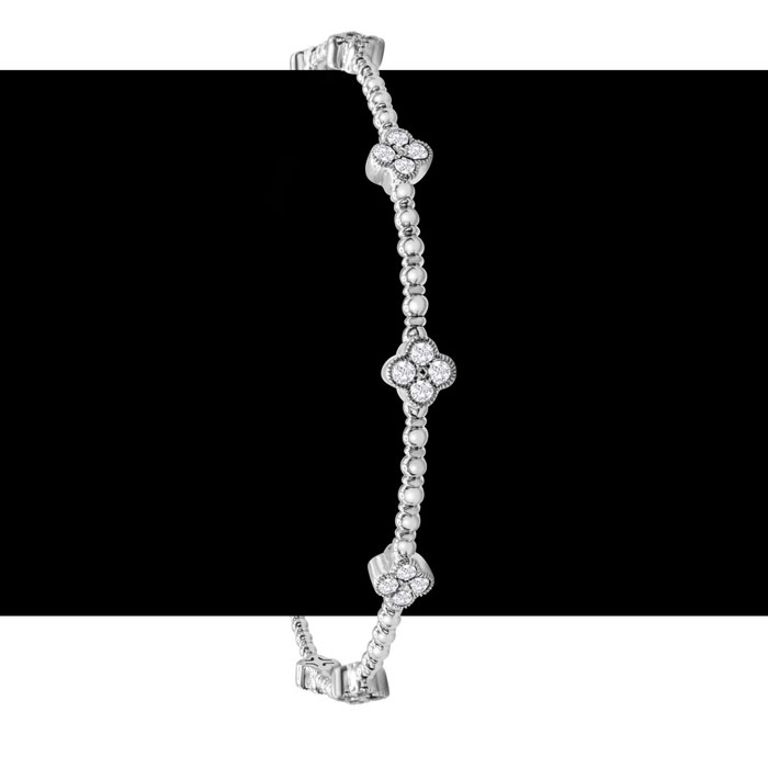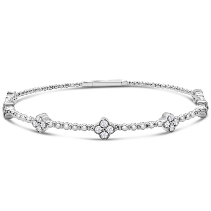 1/2 Carat Lab Grown Diamond Flower Flexible Bangle Bracelet In 14 Karat White Gold, 7 Inches