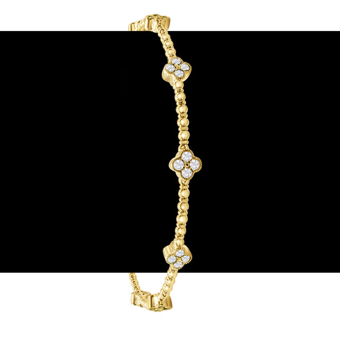 1/2 Carat Lab Grown Diamond Flower Flexible Bangle Bracelet In 14 Karat Yellow Gold, 7 Inches