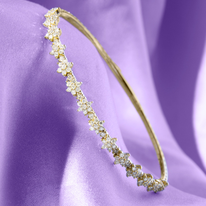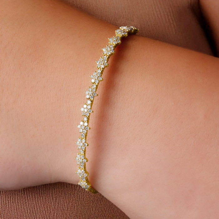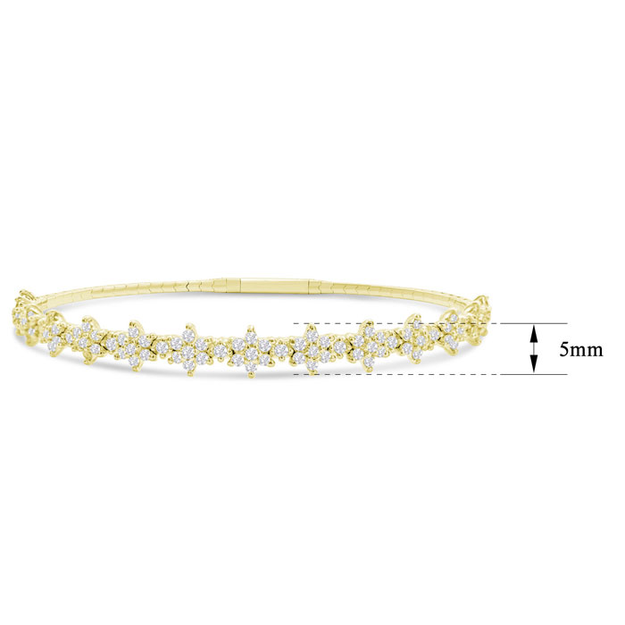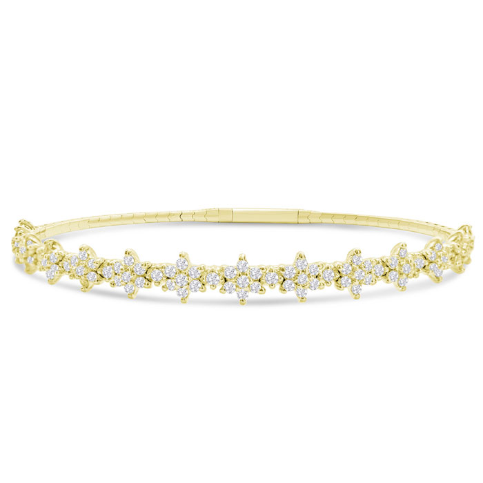 1 Carat Natural Diamond Flower Bangle Flexible Bracelet In 14K Yellow Gold, 7 Inches