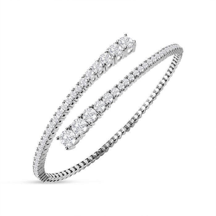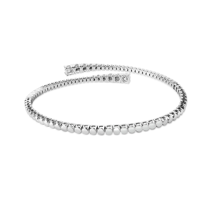 2 1/2 Carat Natural Diamond Flexible Bangle Bracelet In 14 Karat White Gold, 7 Inches