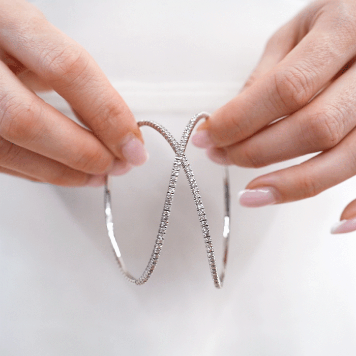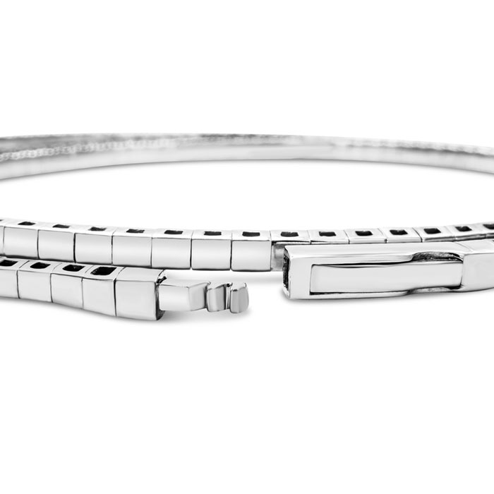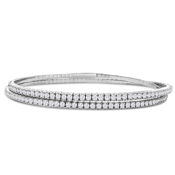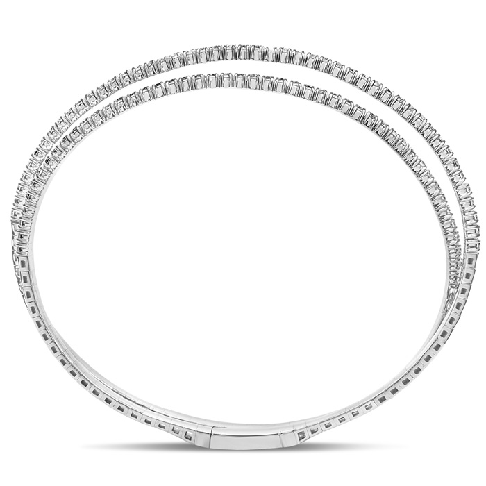 2 Carat Natural Diamond Bangle Flexible Bracelet In 14K White Gold, 7 Inches