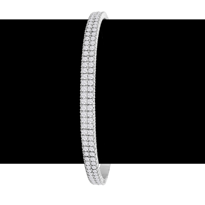 2 Carat Diamond Double Row Flexible Bangle Bracelet In 14K White Gold