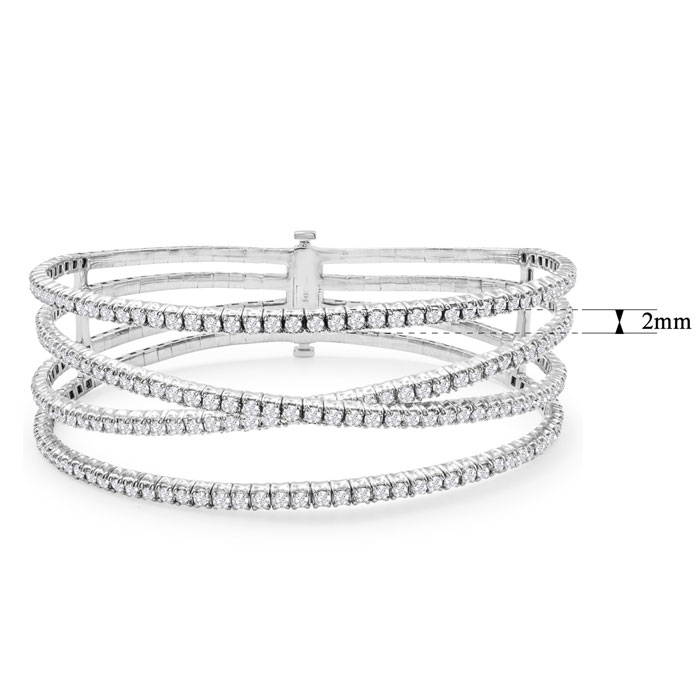 4 1/3 Carat Natural Diamond Flexible Bangle Bracelet In 14K White Gold, 7 Inches