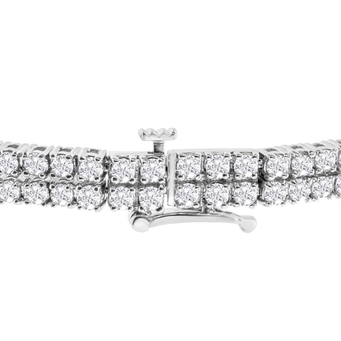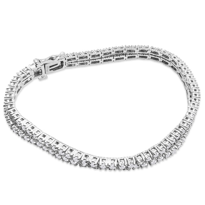 This amazing diamond tennis bracelet features 146 sparkling diamonds in a double row. This bracelet is in 14 karat white gold and is 7 inches long with a box with tongue and safety clasp. Each strand is 2.3mm wide.