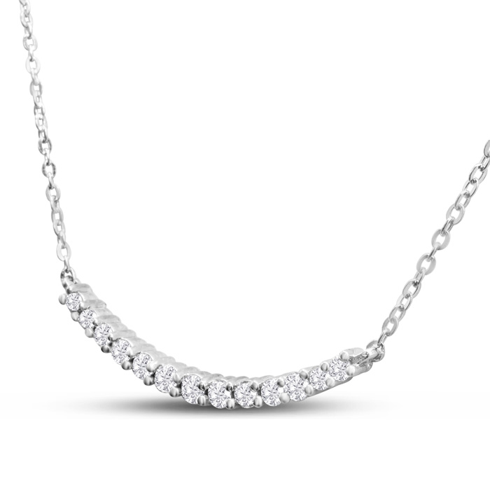 1/2 Carat Natural Graduated Diamond Smile Necklace In Sterling Silver With 17 Inch. Adjustable Chain. BLOWOUT PRICED