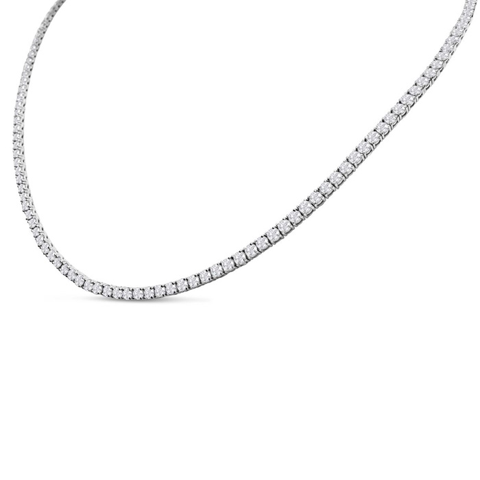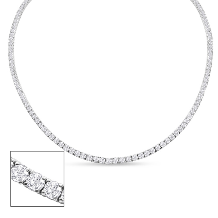13 Carat Natural Diamond Tennis Necklace In 14 Karat White Gold, 22 Inches