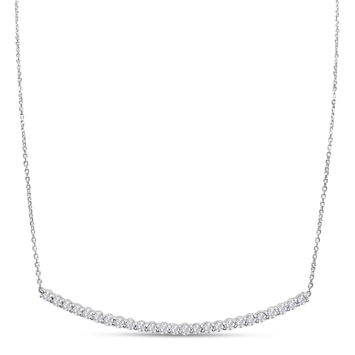 2 Carat Natural Diamond Smile Necklace In 14K White Gold With 17 Inch Adjustable Chain