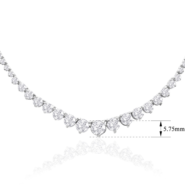 Graduated 10 Carat Natural Diamond Tennis Necklace In 14 Karat White Gold, 17 Inches