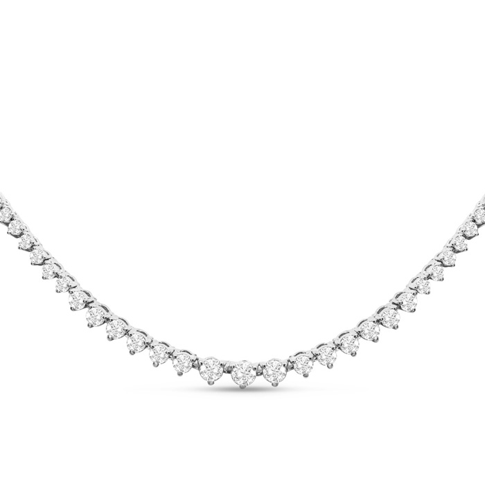 Graduated 5 Carat Natural Diamond Tennis Necklace In 14 Karat White Gold, 16 Inches