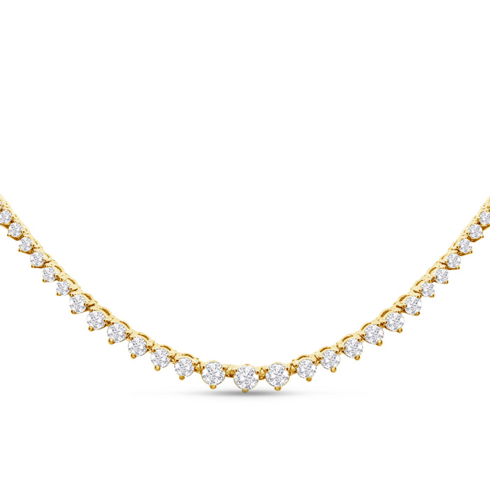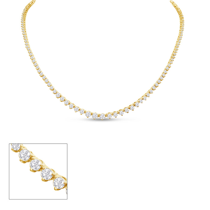 Graduated 5 Carat Natural Diamond Tennis Necklace In 14 Karat Yellow Gold, 16 Inches