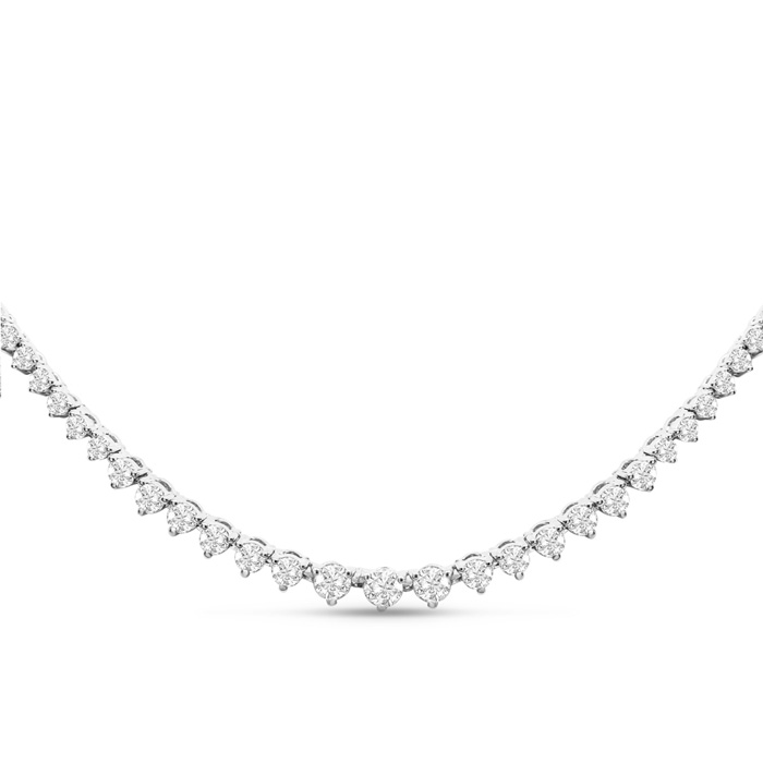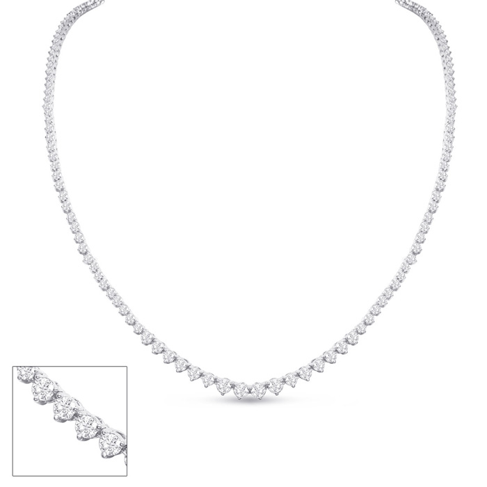 Graduated 6 1/2 Carat Natural Diamond Tennis Necklace In 14 Karat White Gold, 22 Inches