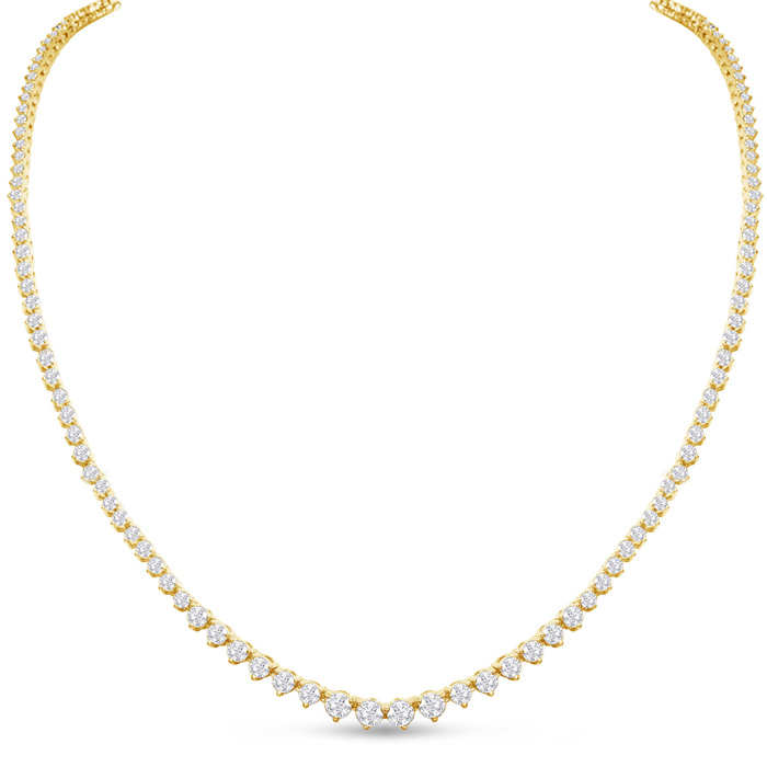 Graduated 7 Carat Natural Diamond Tennis Necklace In 14 Karat Yellow Gold, 24 Inches