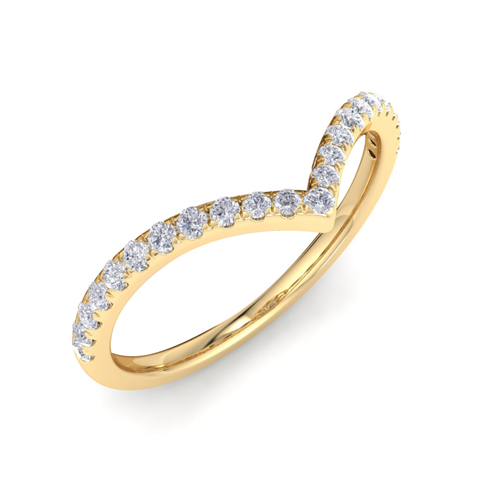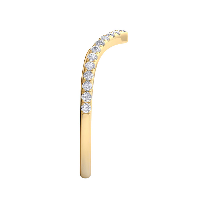 This amazing matching diamond band features 23 round diamonds in I-J color, I1-I2 clarity. Total carat weight is approximately 1/3 carat. This ring is in 14 karat yellow gold.