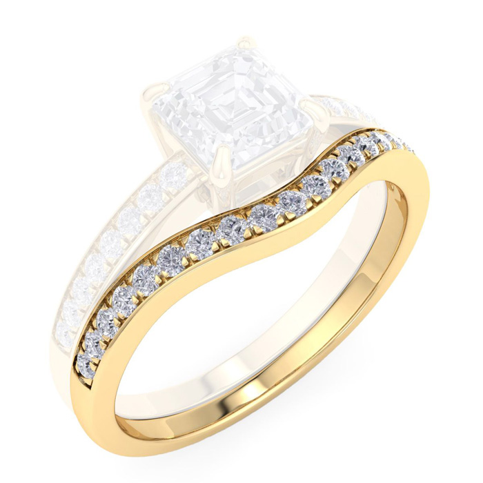 This amazing matching diamond band features 19 round diamonds in I-J color, I1-I2 clarity. Total carat weight is approximately 1/5 carat. This ring is in 14 karat yellow gold.