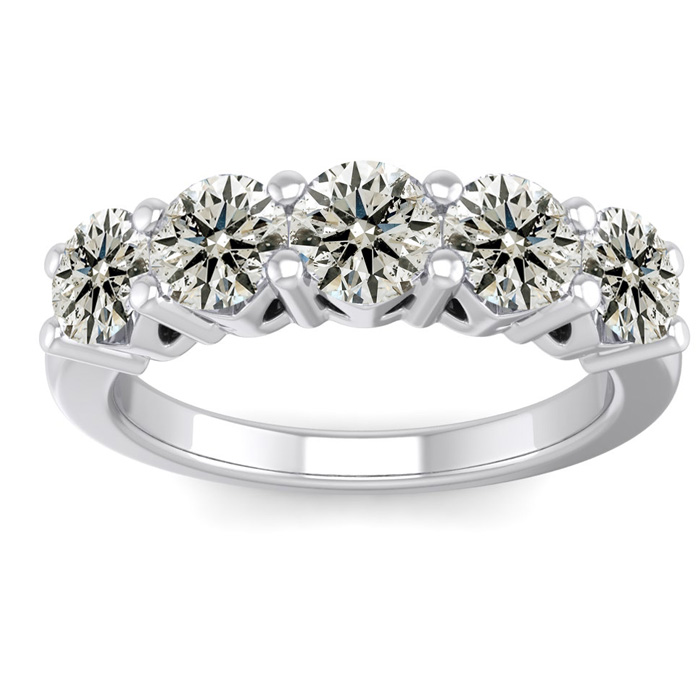 1 1/2 Carat Five Diamond Wedding Band In 14 Karat White Gold