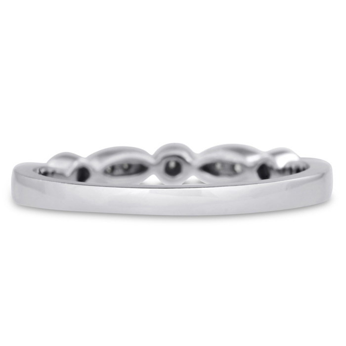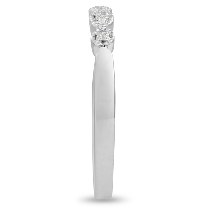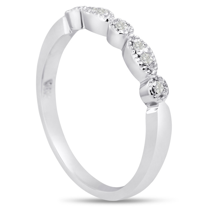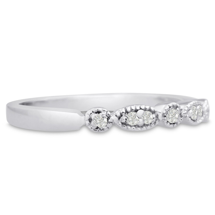 Antique diamond wedding band featuring 7 diamonds in G-H color, I1-I2 clarity. Total diamond weight is 0.07 carats and this ring is crafted in 14 karat white gold.