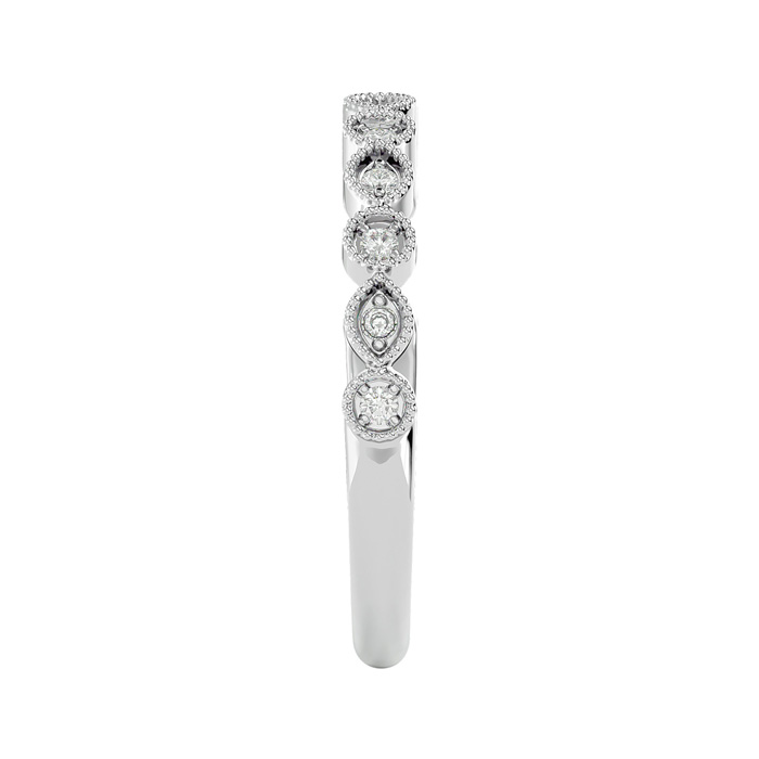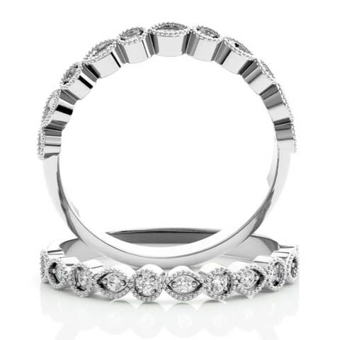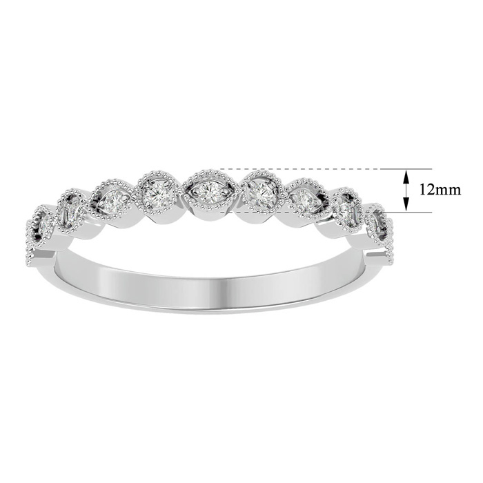 This fabulous diamond wedding band features 11 sparkling diamonds in H-I color, SI2-I1 clarity totaling approximately 1/10 carat. This ring is in 14 karat white gold.