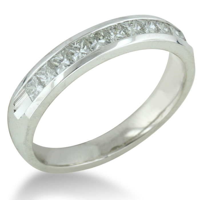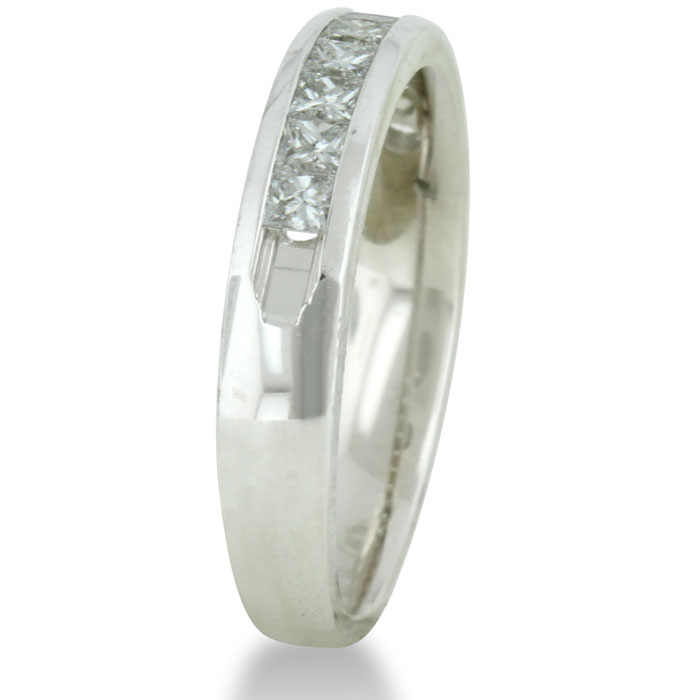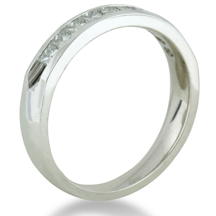 This 1/2ct diamond band has great color and clarity. This ring is going to look very clean and with the princess cut diamonds it is bound to have a radiant sparkle!