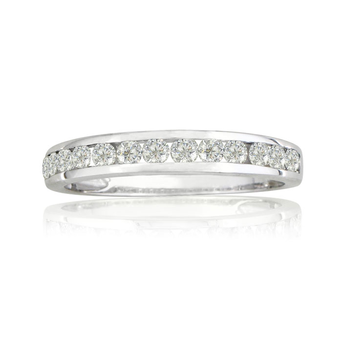 I love the elegance of a channel set wedding band. This wedding band will be the perfect compliment to almost any style engagement ring.