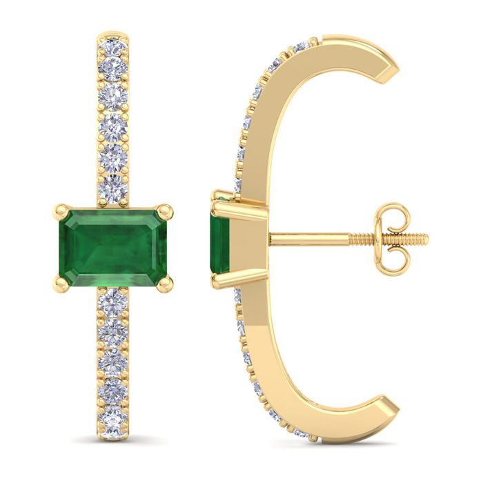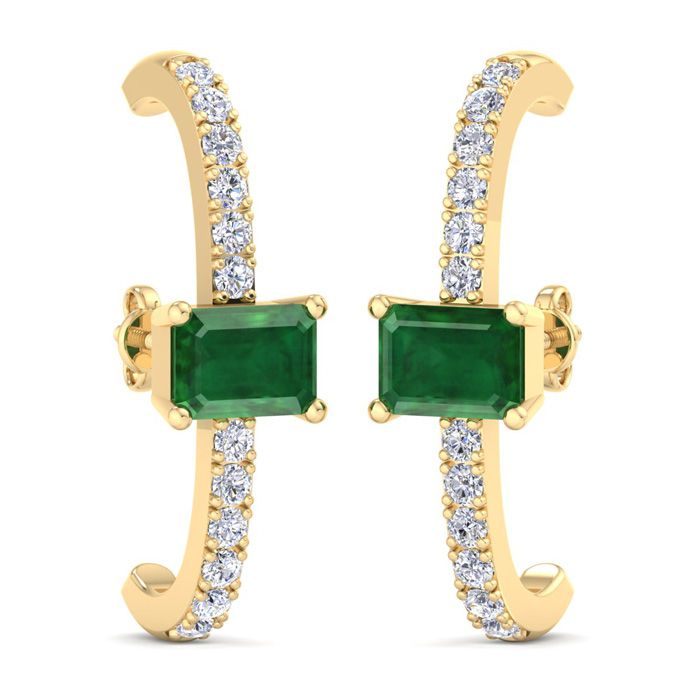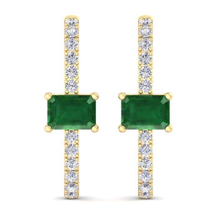 2 1/2 Carat Emerald and Lab Grown Diamond Hoop Earrings In 14 Karat Yellow Gold, 1 Inch - Emerald