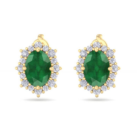 2 Carat Oval Shape Emerald and Diamond Earrings In 14K Yellow Gold