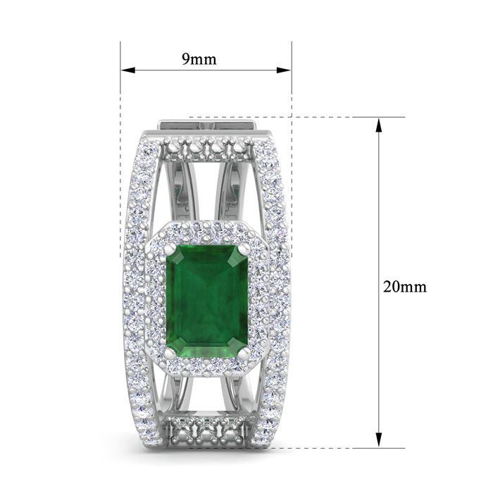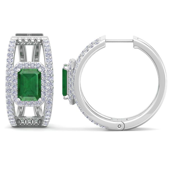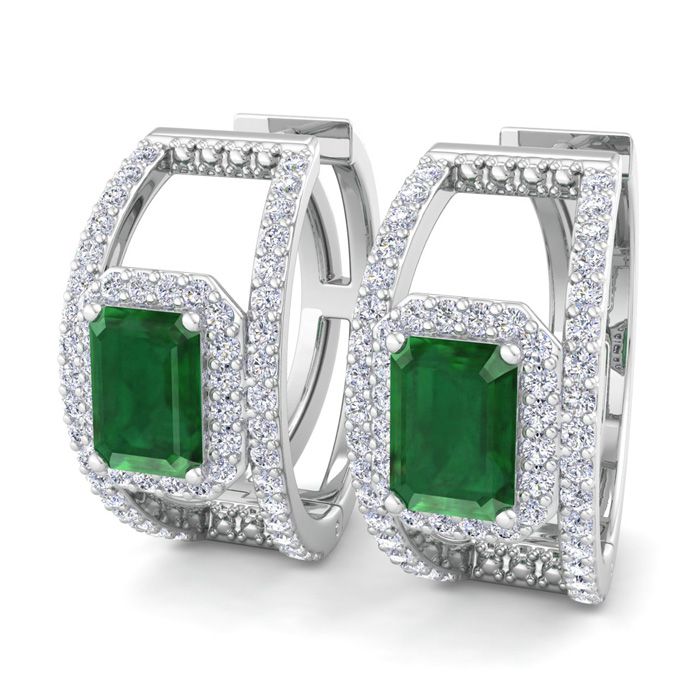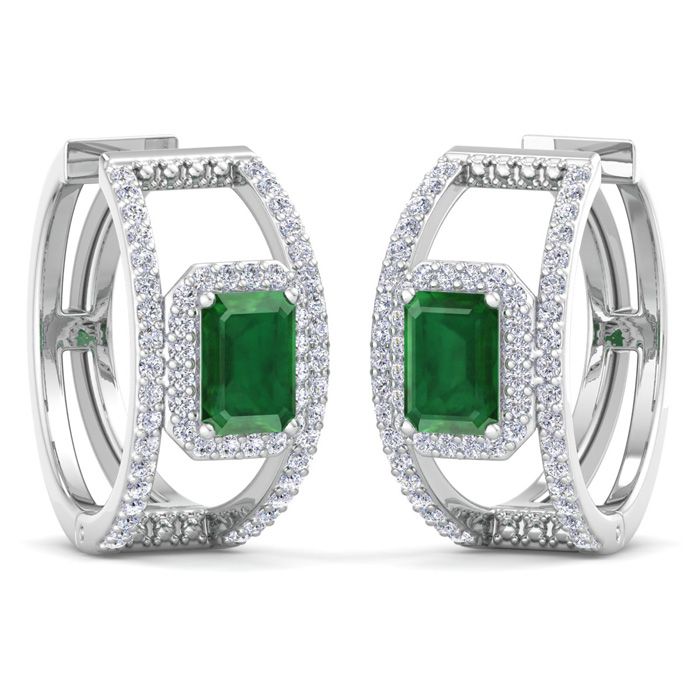 3 Carat Emerald and Lab Grown Diamond Hoop Earrings In 14 Karat White Gold