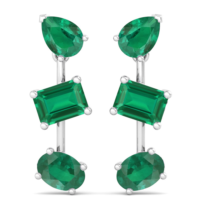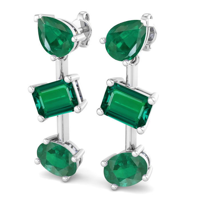 Emerald Earrings 5 Carat Emerald Drop Earrings In 14 Karat White Gold, 1 Inch