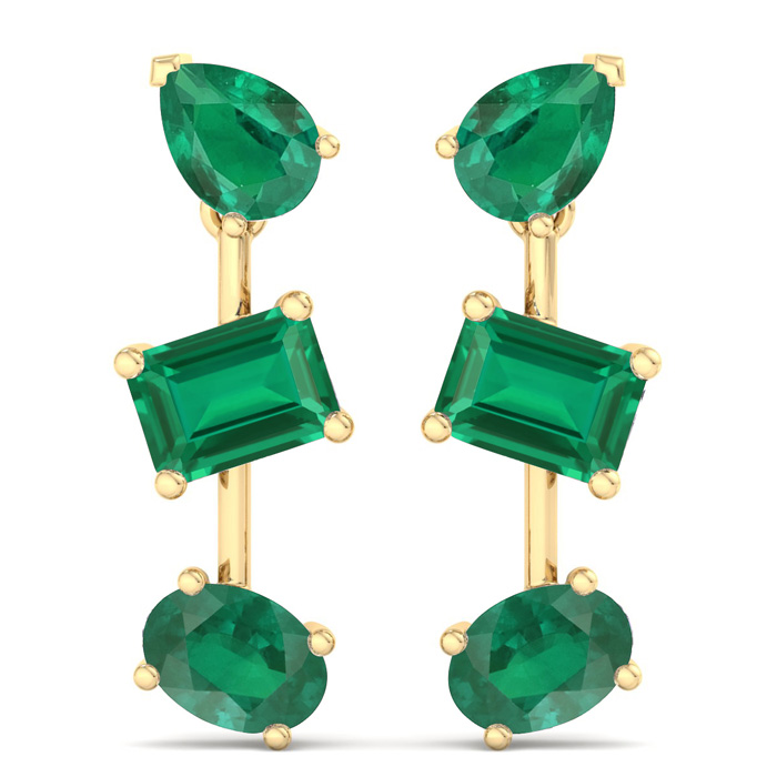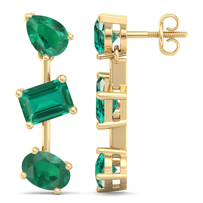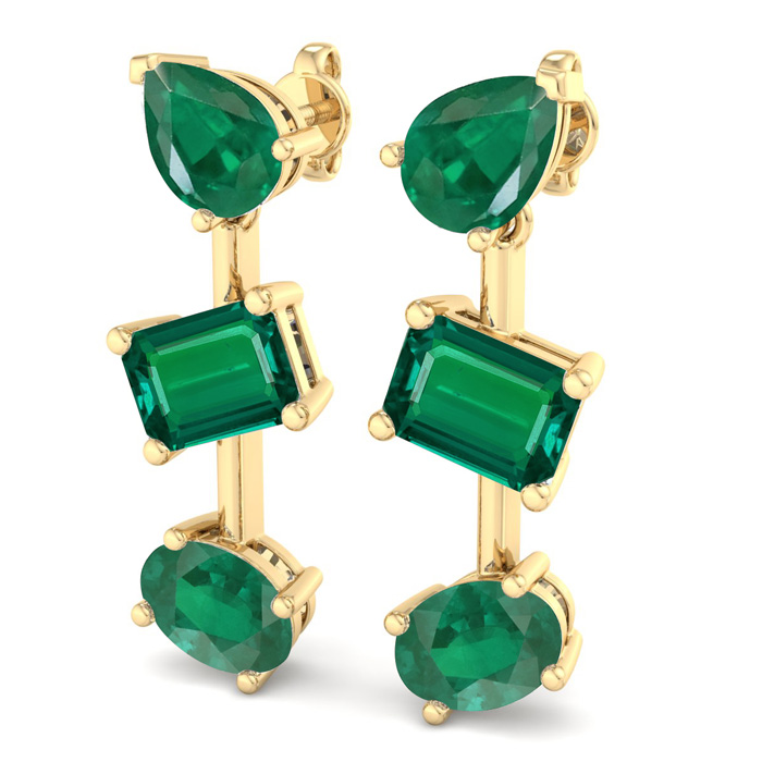 Emerald Earrings 5 Carat Emerald Drop Earrings In 14 Karat Yellow Gold, 1 Inch