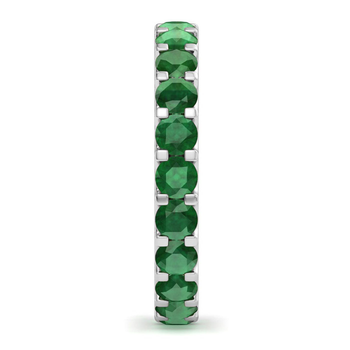 This classic eternity band features 33 round shape emerald gemstones at approximately 1 carat total weight. Ring is 2mm wide and is in 14 karat white gold.