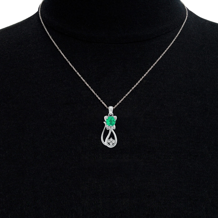 1 Carat Emerald and Diamond Cat Necklace In 10K White Gold, 18 Inches