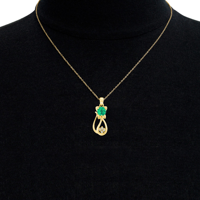 1 Carat Emerald and Diamond Cat Necklace In 10K Yellow Gold, 18 Inches