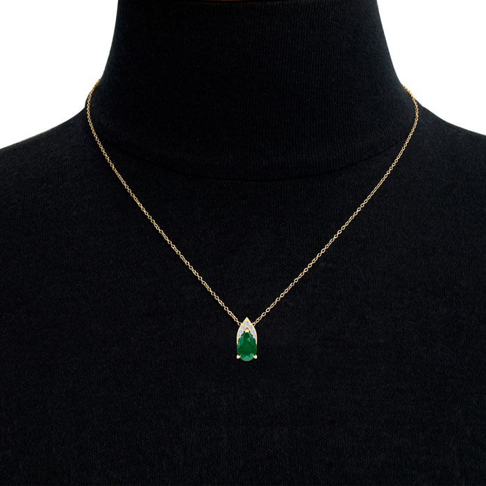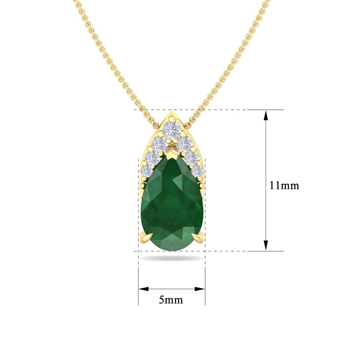 7/8 Carat Pear Shape Emerald Necklace With Diamonds In 14 Karat Yellow Gold, 18 Inch Chain