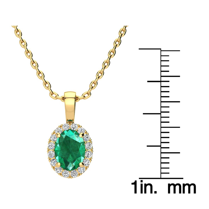1-1/3 Carat Oval Shape Emerald Necklaces With Diamond Halo In 14 Karat Yellow Gold, 18 Inch Chain