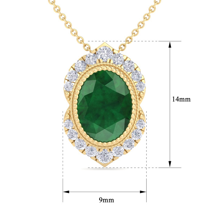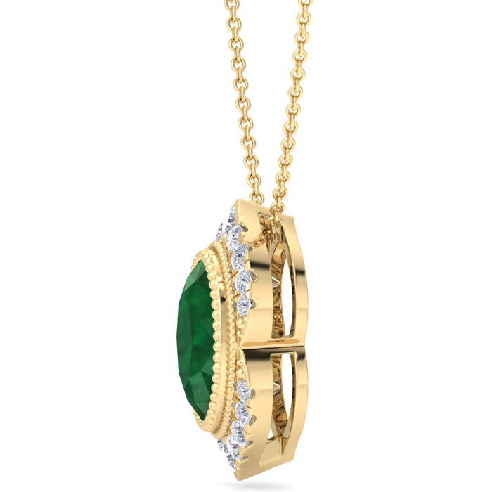1-1/5 Carat Oval Shape Emerald Necklaces With Diamond Halo In 14 Karat Yellow Gold, 18 Inch Chain
