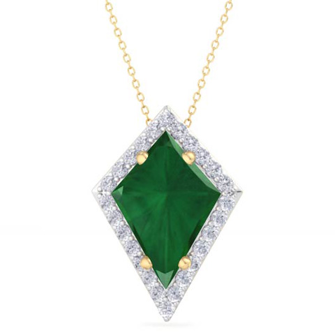 1-3/4 Carat Kite Shape Emerald Necklaces With Diamonds In 14K Yellow Gold, 18 Inch Chain