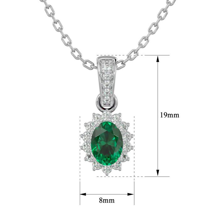 1 Carat Oval Shape Emerald Necklaces With Diamond Halo In 14 Karat White Gold, 18 Inch Chain