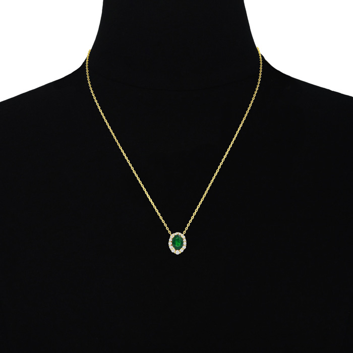 2-9/10 Carat Oval Shape Emerald Necklaces With Diamond Halo In 14 Karat Yellow Gold, 18 Inch Chain
